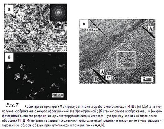 Все это может иметь большое влияние на процессы, протекающие в границах зерен, такие как проскальзывание, диффузия и взаимодействие с решеточными дислокациями. Таким образом, недавние исследования показали, что УМЗ металлы, образованные при ИПД, обладают сложной комплексной микроструктурой, и их микроструктурные характеристики зависят от особенностей проведения ИПД, последующих отжигов и термомеханических воздействий. Эти особенности нужно учитывать при получении объемных наноструктурных материалов с улучшенными свойствами.
