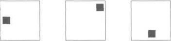 ученного материала без дополнительных его повторений. Чаще это явление наблюдается при распределении повторений материала в процессе его заучивания, а не при запоминании сразу наизусть. Отсроченное на несколько дней воспроизведение нередко дает лучшие результаты, чем воспроизведение материала сразу после его выучивания. Реминисценция, вероятно, объясняется тем, что со временем логические, смысловые связи, образующиеся внутри заучиваемого материала, упрочиваются, становятся более ясными, отчетливыми. Чаще всего реминисценция происходит на 2—3-й день после выучивания материала. На рис. 44 с учетом явления реминисценции показана кривая забывания Г.Эббингауза. Отметим, что реминисценция как явление возникает в результате наложения друг на друга по сути дела двух различных законов, один из которых характеризует забывание осмысленного, а другой — бессмысленного материала. Некоторые иные законы памяти мы продемонстрируем на показательных опытах, обобщение результатов которых позволяет увидеть их в наиболее отчетливом виде. Опыт 1. (Показывает, что при восприятии материала мы обычно видим намного больше, чем запоминаем и в состоянии воспроизвести. Этот опыт также доказывает, что в нашей памяти оседает гораздо больше того, что мы в состоянии осознать.) Испытуемым примерно на 0,05 с предъявляется таблица, содержащая 9 букв (рис. 45). После удаления таблицы из поля зрения испытуемых просят сообщить, сколько из представленных на ней букв они запомнили. В среднем называется обычно 4—5 букв. Затем этим же испытуемым последовательно предъявляется 9 карточек, где с помощью черных квадратиков отмечены места, на которых находились воспринимаемые буквы. Несколько таких карточек показано на рис. 46. Испытуемых при этом просят вспомнить, какие буквы находились на тех местах, где сейчас располагается черный квадратик. Выясняется, что в этом случае припоминается уже не 4—5, а намного больше букв, почти все 9. Результат этого опыта объясняют следующим образом. К тому времени, когда испытуемого просят вспомнить восприятие буквы, часть из них уже уходит из хранилища кратковременной памяти и находится на пути в долговременную память. Поэтому для того чтобы вспомнить, испытуемому уже требуется некоторый стимул-средство. Восстанавливаемое зрительное поле, по-видимому, и является одним из таких стимулов-средств. Установлено, кроме того, что способность воспроизвести произвольно указанную местоположением квадратика букву в этом