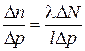 ЭКСПЕРИМЕНТ В кронштейнах поворотного столика интерферометра установите кювету (объект 43), соединенную с пневмоблоком. Создайте в кювете избыточное давление 300 мм.рт.ст. Аккуратно приоткрывая кран помпы пневмоблока, снижайте давление и следите за смещением интерференционной картины. Через каждые две полосы закрывайте кран и фиксируйте давление. В результате получите зависимость числа полос D N смещения картины от избыточного давления D p. Постройте график этой зависимости, убедитесь в его линейности. Определите угловой коэффициент зависимости показателя преломления от давления: