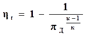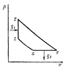 где: процесс а-с соответствует сжатию воздуха во входном диффузоре; процесс с-z – подводу теплоты при сгорании топлива; процесс z-е – расширению газа в сопле; процесс е-а – условному процессу выброса в атмосферу и охлаждению в ней при р = const продуктов сгорания. Термический КПД пульсирующего двигателя можно определить по формуле