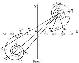 Они монотонно убывают и в пределе, когда rà¥, стремятся к l/2, как это ясно из их построения. (Впрочем, высшие зоны не играют роли. Имеют значение только несколько десятков первых зон Шустера.) Как и в случае зон Френеля, применим графический метод (Рис. 2). Каждую зону Шустера разобьем на узкие полоски и будем изображать колебание в точке Р, вносимое отдельной полоской, вектором на векторной диаграмме. Затем перейдем к пределу, устремляя к нулю ширину каждой полоски. В результате получится плавная кривая, называемая спиралью Корню (1841—1902) (рис. 4). Она состоит из двух симметричных ветвей, бесконечное число раз обвивающихся вокруг фокусов F и F’ и неограниченно приближающихся к ним. Верхняя ветвь представляет действие правой половины волнового фронта, нижняя — левой. Отличие каждой из ветвей от соответствующей спирали на Рис. 2 обусловлено более быстрым убыванием начальных зон Шустера, чем зон Френеля. Колебание, возбуждаемое первой правой зоной Шустера, изображается вектором Положение точки на спирали Корню определяется значением параметра Date: 2015-05-08; view: 2486; Нарушение авторских прав |