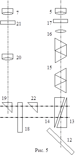 Визирная система имеет объектив 16 фокусирующий в его фокальной плоскости лучи, прошедшие через осветительную призму, слой жидкости, измерительную призму и компенсатор 15. В фокальной плоскости имеется сетка 17 с перекрестием. В окуляр 5 зрительной трубы ведется наблюдение при совмещении точки перекрестия с границей света и тени. Отсчетная система включает в себя круговую шкалу 18, которая вращается вместе с измерительной призмой. Призма 19 и объектив 20 дают изображение этой шкалы в фокальной плоскости окуляра 7, где находится сетка 21 с визирным штрихом для отсчета показателя преломления по круговой шкале прибора. Компенсатор 15 служит для устранения окраски границы, вызванной дисперсией эталонной призмы. Он состоит из двух призм прямого зрения (призмы Амичи), вращающихся в противоположных направлениях с помощью ручки 8 (см. Рис.4). Вращающиеся таким образом призмы образуют систему с переменной дисперсией, последнюю можно подобрать так, что она скомпенсирует дисперсию эталонной призмы. Действия компенсатора сводятся к тому, что все измерения производятся в желтых лучах с длинной волны Date: 2015-05-08; view: 712; Нарушение авторских прав |
