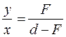 б) на основании формулы, связывающей F с величиной предмета X и с величиной изображения Y и с расстоянием d