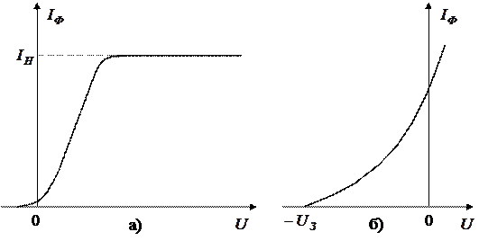 Рисунок 1 - Вакуумный фотоэлемент: а) прямое включение; б) обратное включение.