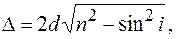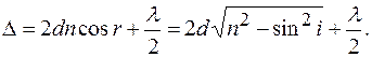 Если интерференция наблюдается в отраженном свете (Рис. 2), то для определения оптической разности хода надо учесть изменение разности хода лучей на