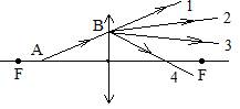 233. Какой из лучей 1, 2, 3 или 4 продолжает световой луч S после преломления его в линзе? OO’ - главная оптическая ось линзы.