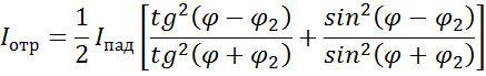 Если на границе раздела двух сред падает естественный свет, то для него На рис. 9.2 представлена исследованная зависимость ρ|| и ρ┴ от угла падения φ. Т.к. естественный свет, падающий на границу раздела, представляет собой сумму двух не скоррелированных по фазе взаимно перпендикулярных волн Е|| и Е┴. Тогда для суммарной интенсивности отраженного света, измеренной без учета его поляризации, находим