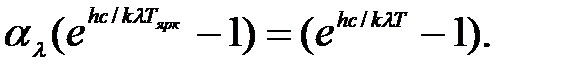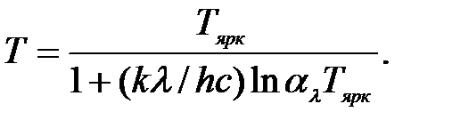 где Тярк – температура, измеренная пирометром. Как видно из (10.16), истинная температура серого тела выше его яркостной температуры. Таким образом, при расчете значения постоянной Стефана–Больцмана в выражение (10.12) необходимо подставлять температуру тела, рассчитанную по формуле (10.16).