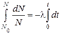 Естественный радиоактивный распад ядер протекает самопроизвольно, без воздействия извне. Скорость радиоактивного распада характеризуется временем Т, которое потребуется для того, чтобы половина наличных ядер испытала радиоактивный распад. Это время называется периодом полураспада. Число ядер, распадающихся за малый промежуток времени, пропорционально числу наличных ядер N и времени dt: -dN = lNdt, где l - постоянная величина, называется постоянной распада. Это уравнение легко интегрируется: