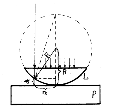 Решая совместно (5) и (6), найдем, что кривизны радиус линзы и радиус "k"-го кольца (темного) связаны соотношением