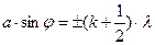 является условием минимумов интенсивности, где j - угол наблюдения, l - длина световой волны. Это выражение легко получить из следующих соображений. Если разность хода D лучей от краев щели до точки наложения на экране равна ±Kl, открытую щелью часть волновой поверхности можно разбить на 2K равных по ширине зон, причем разность хода от краев каждой зоны до точки наложения на экране будет равна l/2. Колебания от каждой пары соседних зон взаимно погашают друг друга, так что результирующая амплитуда равна нулю. Если для точки наложения волн на экране разность хода волн от краев щели D равно ±(K+1/2)l, то число зон уместившихся в размер щели будет нечетным, действие одной из них окажется некомпенсированным, и будет наблюдаться максимум интенсивности