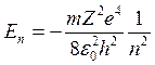 Подставляя в эту формулу значение скорости (6), получим для энергий стационарных состояний атома следующее выражение: