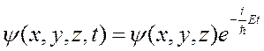 здесь m — масса частицы, U — функция координат и времени, равная взятому с обратным знаком потенциалу силового поля, i — мнимая единица, Если силовое поле, в котором находится частица, стационарно (не зависит от времени), то потенциал U от времени не зависит и приобретает смысл потенциальной энергии рассматриваемой частицы во внешнем силовом поле. В этом случае Y можно представить в виде произведения двух функций, одна из которых зависит только от координат, а другая только от времени здесь Е — полная энергия частицы, которая в случае стационарного поля с течением времени не меняется. После подстановки этого выражения в уравнение (10) для функции y(x,y,z) получается следующее уравнение: