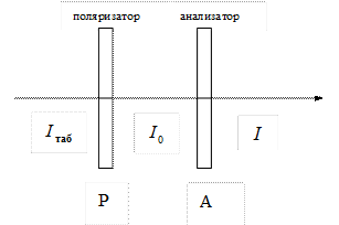 • Табиғи жарық поляризатор мен анализатор жүйесіне түссін.