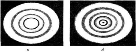 Щоб спостерігати інтерференцію від тонкого повітряного шару, потрібні скляні пластинки з різним ступенем обробки поверхні. Найкраще оброблені поверхні граней скляної призми. Трохи гірше — поверхня дзеркального скла марки ПТ (поліроване технічне) і марки ПБ (поліроване будівельне). Поверхня віконного скла дуже нерівна. Для виконання дослідів доцільно виготовити пластинки трьох сортів з різного скла. Щоб їх легко можна було розрізняти, вони виготовляються різних розмірів, наприклад, пластинка № 1 (2X8 см) зі скла ПТ; № 2 (3X8 см) зі скла ПБ; № 3 (4 X 8 см) з віконного скла. Пластинку № 1 можна замінити скляною призмою. Спочатку спостерігають інтерференційну картину від повітряного шару, який утворюється між добре обробленими поверхнями. Для цього складають пластинки № 1 і № 2, стискають їх пальцями і спостерігають у відбитому світлі (під кутом, меншим від 45е* до поверхні пластинок) інтерференційну картину у вигляді смуг однакової товщини. Якщо один кінець пластинок стиснути сильніше, а другий — слабкіше, утвориться повітряний клин і смуги будуть паралельні ребру клина. У білому світлі вони райдужні. Коли картину розглядають у монохроматичному світлі, наприклад у червоному світлі від фотоліхтаря, видно світлі (червоні) й темні смуги. Стискуємо пластинки № 1 і № 3, спостерігаємо, що смуги однакової товщини викривлені. Якщо на поверхні скла № 3 буде «горбочок», то смуга викривлятиметься до ребра повітряного клина, якщо ж «ямка», смуга відхилятиметься; від ребра. Такі досліди ілюструють спосіб перевірки якості обробки поверхонь.
