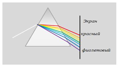 4. Дисперсія світла при його проходження через тригранну призму. Обладнання: трикутна скляна призма, джерело світла.