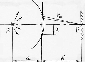 Дифракция на круглом отверстии. Пусть в точке S находится источник сферических волн (рис. 3), на расстоянии