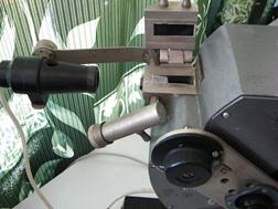 5. Смещая осветитель, направьте луч света в окно верхней камеры. 6. Перемещением рукоятки с окуляром вдоль шкалы вверх и вниз выведите поле зрения окуляра границу света и тени. 7. Вращением гайки окуляра добейтесь резкого изображения штрихов шкалы и устраните окрашенность границы света и тени вращением рукоятки дисперсионного компенсатора.