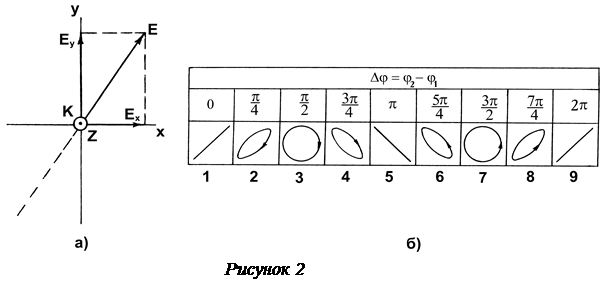Явище поляризації світла і в особливості взаємодії поляризованого світла з речовиною знайшли виключно широке застосування в наукових дослідженнях структури та оптичних властивостей кристалів, структури біологічних об’єктів, у кристалохімії, органічній та аналітичній хімії, у мікроскопії, а також для одержання інформації про трудно досяжні, віддалені об’єкти (зокрема, в астрофізиці). Поляризоване світло широко використовується в багатьох областях техніки, наприклад, в лазерній техніці, в системах оптичного зв’язку, в оптичній локації, у фотометрії для плавного регулювання інтенсивності світлового променя, для дослідження механічних напружень в конструкціях, у швидкісній фото- та кінозйомці, для створення стереоскопічного ефекту у кіно, підсилення контрасту та усунення світлових відблисків у фотографії. Поляризаційні методи вимірювань в оптиці відносяться до виключно точних. Наприклад, при визначенні показників заломлення вони у 10 000 разів перевищують за чутливістю інтерференційні методи. В історії фізики задовго до створення електромагнітної теорії світла (Максвелл, 1866) дослідження поляризації вперше навело на думку, що світло – це поперечна хвиля (Гук, 1672). Суттєве значення для розуміння поляризації світла мало її проявлення в явищах інтерференції світла і, зокрема, той факт, що світлові промені із взаємно перпендикулярними площинами поляризації не утворюють інтерференційних картин (Юнг, 1817). Мета даної роботи полягає у вивченні властивостей плоскополяризованого світла та його застосування. 1 ТЕОРЕТИЧНІ ВІДОМОСТІ 1.1 Поляризоване та неполяризоване світло З електромагнітної теорії світла відомо, що плоска світлова хвиля є поперечна, тобто три вектори, які характеризують хвилю – електричний Е, магнітний Н та хвильовий вектор k (паралельний вектору v швидкості поширення хвилі) – взаємно перпендикулярні (рисунок 1). Плоска світлова хвиля називається лінійно поляризованою (або плоско поляризованою), якщо електричний вектор Е, змінюючись, весь час лежить в одній площині.1) Площина, що проходить через напрямок коливань вектора Е та напрямок поширення лінійно поляризованої світлової хвилі, називається площиною поляризації хвилі (хвиля на рисунку 1 поляризована у горизонтальній площині).