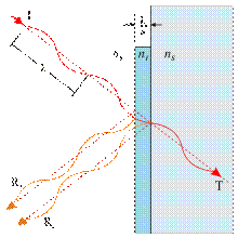 Интерференция в четверть-волновом противобликовом покрытии Толщина просветляющего слоя (например, кремниевой кислоты) равняется 1/4 длины световой волны. В этом случае лучи, отражённые от её наружной и внутренней сторон, погасятся вследствие интерференции и их интенсивность станет равной нулю. Для наилучшего эффекта показатель преломления просветляющей плёнки должен равняться квадратному корню показателя преломления оптического стекла линзы. Наиболее подходящим материалом для просветляющей пленки является фторид бария, обладающий весьма низким (n=1,38) показателем преломления. Однако, фторид бария растворим в воде и требует нанесения защитного покрытия. Отражательная способность стекла, просветленного таким способом, сильно зависит от длины волны, что является основным недостатком однослойного просветления. Минимум отражательной способности соответствует длине волны λ=4d·n, где d — толщина пленки, n — ее показатель преломления, В первых просветлённых объективах добивались понижения коэффициента отражения для лучей зелёного участка спектра (555 нм — область наибольшей чувствительности человеческого глаза), поэтому на отражение, стекла таких объективов имели сине-фиолетовую или голубовато-зелёную окраску («голубая оптика»). Напротив, пропускание света таким объективом максимально на этой длине волны, что приводило к заметному окрашиванию изображения. В настоящее время однослойное просветление часто используется для лазерной оптики, рассчитанной на работу в узком спектральном диапазоне. Используя стекла с относительно высоким показателем преломления и напыляя пленку фторида бария, удается добиться минимальной отражающей способности около 1 %. Главным преимуществом такого просветления является его дешевизна. Date: 2015-05-08; view: 536; Нарушение авторских прав |