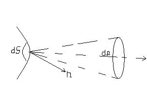 Полный поток через замкнутую поверхность: Ф= s∫dФ б) Сила света. В конусе опираюәемся на ds в любом сечение один и тот же поток: сечение конуса сферической поверхностью с центром в L и с радиусом =1 дает меру телесного угла конуса.Если нолрмаль n к поверхности ds составляет угол I с осью конуса, то: dΩ= Величину потока, приходящего на единицу телесного угла называется силой света: