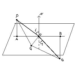 Всякий другой путь больше и Эта теорема в геометрической оптике представляет аксиому, сформулированную Ферма (1660г.) как общий закон распространения света. Для однородной среды этот принцип приводит к закону прямолинейного распространения согласно геометрической аксиоме о том, что прямая есть кратчайшее расстояние между двумя точками. Для случая перехода через границу различных сред этот принцип дает законы отражения и преломления света. Любой путь Таким образом, получим первый закон преломления. Чтобы из всех путей от Р до Q лежащих в плоскости падения выбрать путь, требующий min времени, исследуем как меняется это время в зависимости от положения точки О.