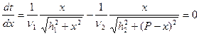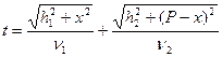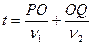 Путь АО=х; РА= Время распространения света по пути POQ будет: