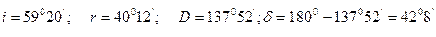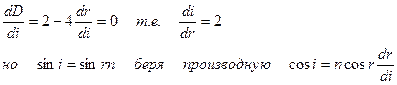 Если взять вторую производную D по i можно показать, что полученный экстремум есть max, т.e. в направлении CВ происходит концентрация света, что и воспринимается как радуга. Пологая n=1,33, получим Если учесть многократные отражения, то получаются верные результаты и для второй (иногда) радуги.