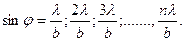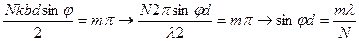 В отличии от дифракции на одной щели, дифракционная картина на N щелях характеризуется наличием острых max которые наблюдаются при условии