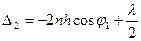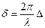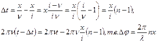 В пленке скорость света в n раз меньше чем в вакууме, где n показатель преломления. Поэтому после прохождения длины L фаза измениться на Величина