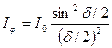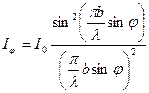 Таким образом, распределение интенсивности в дифракции картине зависит от 2-х сомножителей. Первый определяет дифракцию на одной щели. А второй – взаимодействие лучей от отдельных щелей.
