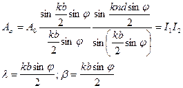 Пусть волна попадает нормально к площади щели. Разобьем площадь щели на ряд узких полосок равной ширины. Каждая из них может рассматриваться как источник волн, причем фазы всех этих волн одинаковы. Амплитуды также одинаковы. Это упрощает решение задачи. Графически результат сложения амплитуд для любой точки экрана: а) б) Так как амплитуда от всей щели = в)