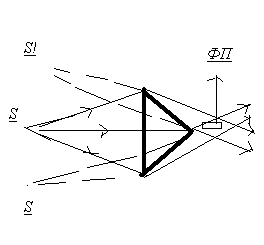 Лучи А1иS1 наклоненные под другим углом соберутся в другой точке фокальной плоскости. Двухлучевые интерферометры. Применяются для измерения малых разностей расстояний или малых изменений оптических свойств среды. Один из простейших 2-x толстых плоскопараллельных пластин. при раздвоении луча в точке А возникает разность хода.