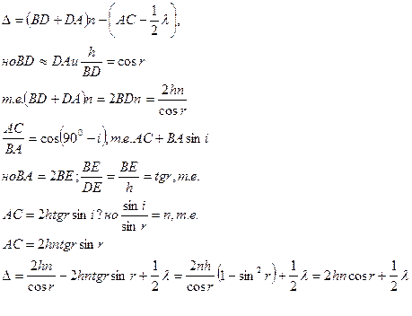 Если пластины одинаковые, то в случае их параллельности полная разность хода=0. Если между пластинками образован малый угол ε, то Обозначим