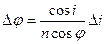 При наблюдении интерференционной картины глазом: из-за малости отверстия его зрачка происходит резкое ограничение по углу лучей, попадающих от протяженного источника света после отражения от пленки в глаз наблюдателя. Можно считать поэтому, что при определенном положении наблюдателя cosr является const. В этом случае картина интерференции зависит только от толщины пленки, т.е. толщины клина в точке. При малых углов I (и соответственно r)разность хода Δ световых пучков излучаемых и другими точками протяженного источника, будет в точке А примерно такой же. Таким образом, в точке А на поверхности клина (или вблизи неё) интерференционные картины, создаваемые различными парами световых лучей приходящими от разных точек светящейся поверхности источника будут ≈ совпадать. Отсюда вытекает высокая видимость интерференционной картины на поверхности клина. В других областях над клинами будет иметь место беспорядочное положение различных интерференционных картин, и, следовательно, однородная освещенность этих областей пространства. Другими словами получает объяснение локализация интерференционной картины вблизи поверхности клина. Освещенность всех точек интерференционной картины соответствующих одинаковыми толщинами h будет одинаковой (полосы одинаковой толщины). Поскольку малейшее изменение h влияет на интерференционную картину – это наводит на мысли о возможности использования интерференционных эффектов для измерения малых смещений отражающих поверхностей. В случае плоскопараллельной пластинки h и n всюду один и тот же и Δ может меняться только при изменении угла наклона лучей. Очевидно, что все лучи соответствующих одному и тому же значению r будет давать одну и ту же разность фаз, таким образом, max и min будут располагаться по направлениям, соответствующим одинаковому наклону лучей.
