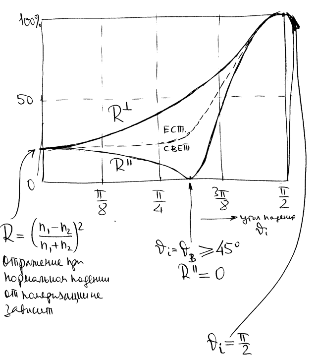 РИС.28-5 Угловая зависимость коэффициента отражения: