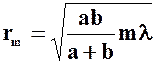 Выражения, стоящие в скобках, согласно (4.2), равны нулю, а оставшаяся часть от амплитуды последней зоны + А m /2 ничтожно мала. Таким образом, амплитуда, создаваемая в произвольной точке М сферической волновой поверхностью, равна половине амплитуды, создаваемой одной центральной зоной. Следовательно, действие всей волновой поверхности на точку М сводится к действию ее малого участка, который меньше центральной зоны. Расчеты показывают, что радиус внешней границы m-й зоны Френеля