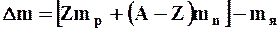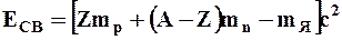 где mp, mn, mя - соответственно массы протона, нейтрона и ядра. В таблицах обычно приводятся не массы mя ядер, а массы m атомов. Поэтому для энергии связи ядра пользуются формулой