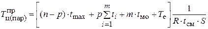Подставив данные из приведенного выше примера (n = 3, m =4, р = 1) в полученную формулу, определим продолжительность технологического процесса: