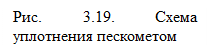 Смесь из головки пескомета выбрасывается отдельными, предварительно уплотненными комками, или пакетами. За каждый оборот лопатки выбрасывается один комок, а в минуту — 1400…1500 комков, так что наблюдателю кажется, что смесь выходит из головки непрерывной струей. Вследствие большой скорости пакеты с силой ударяют о поверхность смеси в опоке и уплотняют ее, действуя как своего рода трамбовка; одновременно опока наполняется смесью. Чтобы иметь возможность направлять поток смеси в разные места по всей площади опоки, формовщик может перемещать метательную головку над опокой в горизонтальной плоскости, вручную или с помощью приводов. При набивке пескометом смесь уплотняется равномерно по высоте опоки. Равномерность уплотнения делает пескомет особенно пригодным для набивки нижних опок с высокими моделями. Местной рыхлости за острыми кромками углов модели при набивке пескометом не получается. Степень уплотнения регулируют либо переключением вращения ротора головки на другую скорость (пескомегы могут иметь, например, две скорости), либо путем быстрого и медленного вождения головки над опокой. При более медленном вождении головки уплотнение получается меньше. В этом случае струя смеси все время бьет в одно место и в опоке образуется коническая кучка смеси, причем новые порции ссыпаются с нее в стороны. При всяком же перетекании и сдвиге сыпучие зернистые материалы разрыхляются. Пескометы благодаря большой производительности (10…50 м8/ч) применяются, как правило, для набивки лишь средних и крупных опок. Небольшие опоки невыгодно набивать пескометом из-за слишком большой потери смеси, падающей мимо опоки. Широкошовный пескомет имеет ковш шириной в опоку, поэтому для уплотнения одной полуформы требуется 10…12 с. К его недостаткам относятся энергоемкость и шум. Процесс пескодувного уплотнения заключается во вдувании сжатым воздухом смеси 'В стержневой ящик или очень редко в опоку (рис. 3.20).