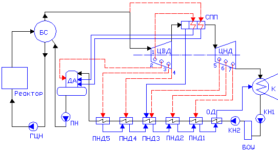 БС -барабан сепаратор; ГЦН - главный циркуляционный насос; | ||||||