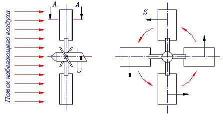 Схема работы ветряной мельницы (разрез А-А рис.1)