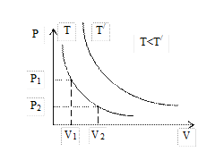 18.Изотермический процесс: уравнение, график в PV, PT, VT координатах. Изотермический процесс - процесс, происходящий при постоянной температуре. Изотермический процесс можно осуществить, поместив систему, сосуд с поршнем, в термостат. Термостат – тело с настолько большой теплоемкостью Если в этих условиях перемещать поршень вниз, то под действием внешней силы газ будет сжиматься, и работу будет совершать внешняя сила. Если газ будет расширяться, то поршень будет перемещаться вверх, и работу будет совершать газ. Для реализации условий