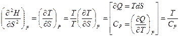Связь двух свойств системы, а именно, адиабатического изменения температуры при изменении давления и изобарического изменения объема при сообщении системе теплоты получим, рассчитав смешанные производные: