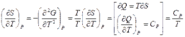 Смешанные производные устанавливают связь между двумя свойствами системы – изменением энтропии при ее изотермическом изменении давления и изменением объема при изобарическом нагревании: