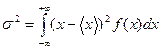 где Дисперсия. «Разброс» величины около ее среднего значения характеризуется дисперсией. Она определяется средним квадратом отклонения рассматриваемой величины от ее среднего значения и задается формулой для непрерывной случайной величины: