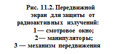 Для поглощения либо ослабления ионизирующего излучения применяют «экраны», под которыми понимают передвижные (рис. 11.2) или стационарные щиты. Выбор материала для изготовления защитного экрана зависит от преобладающего вида излучения.