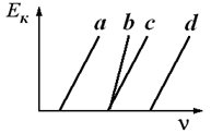 В опытах по внешнему фотоэффекту изучалась зависимость кинетической энергии фотоэлектронов от частоты падающего света. Для некоторого материала фотокатода исследованнаязависимостьпредставленанарисунке 43а линией с. Призаменематериалафотокатоданаматериалс большей работой выхода зависимость будет соответствовать прямой …