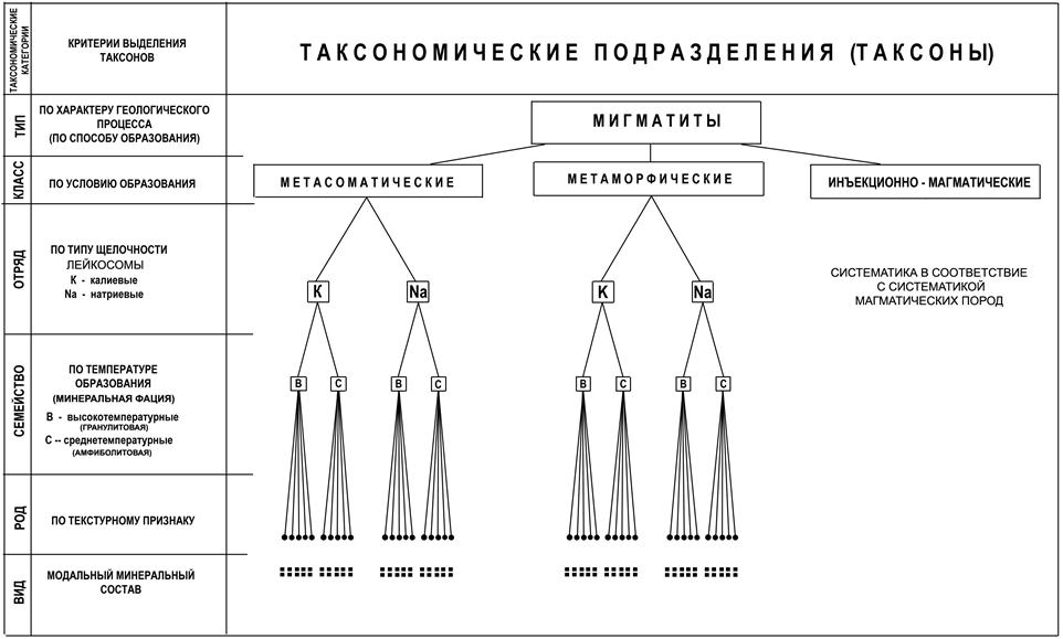 Рисунок. VII.1.1 – Схема многоступенчатой систематики мигматитов.