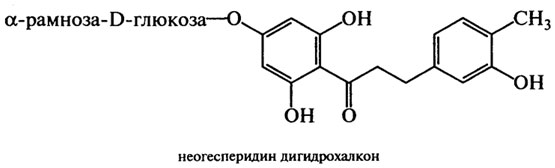 Неогесперидин дигидрохалкон Е959 — подсластитель из кожуры цитрусовых. Получают модификацией нарингина, выделенного из кожуры грейпфрутов. Ограниченно растворим в воде, хорошо — в спирте. Высокая степень сладости неогесперидин дигидрохалкона (Ксл 1800—2500) позволяет использовать его в очень незначительных количествах. При применении с другими подсластителями его Ксл значительно возрастает.